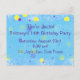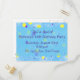 Colorful purple and yellow dots on a textured blue background make a great birthday invitation design.