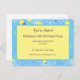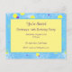Colourful purple and yellow dots on a textured blue background make a great personalised birthday invitation design.