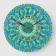 Blue-and-green-based bubble-mosaic mandala-style artwork-design clock, "Bubble-Mosaic Clock 1"