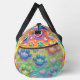 This playful Gear bag features a unique design of vibrant, glossy, bubble-like paw prints in a rainbow gradient. It's a whimsical Kit bag and a fun Weekender for joyous and colourful escapades.