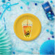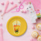 Cute art watercolor original design of bubble tea boba. Whimsical cool design. Orange colours