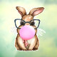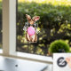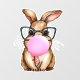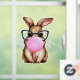 Bubblegum Bunny with glasses and a tie. Window Decal Cling.