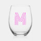 Bubblegum Pink Modern Monogram Initial Letter Stemless Wine Glass
