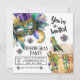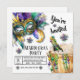 An impressive, feathered Mardi Gras mask and a bucket of champagne dripping with Mardi Gras beads graces the front of this customisable party invitation. A few Fleur de Lis also appear on the front of this party invite. The reverse of this card leaves room for additional information for your guests and about your Shrove Tuesday Event. Enjoy your party! Designed by mw1desginsart.