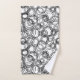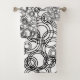 This towel set has a mid-century modern design of concentric circles scattered about the whole design.