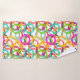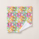 This towel set has a geometric design of three circles nested together and spread throughout the design in several colours.
