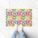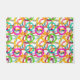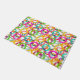 This cloth placemat has a geometric design of three circles nested together and spread throughout the design in several colours.