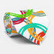 This necktie has a geometric design of three circles nested together and spread throughout the design in several colours.