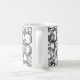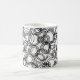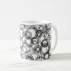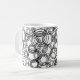 This mug has a mid-century modern design of concentric circles scattered about the whole design.