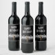 Bubbles on a black background accent these wine bottle labels. Personalise with your names, dates and other details in chic lettering in ANY COLOR fonts for any occasion including birthday parties, New Year's Eve celebrations, anniversary party, business anniversary or any occasion. Text, fonts, colours, sizes can be modified, just click the CUSTOMIZE button. MATCHING wine bag carrier and more in our store.