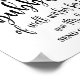 My thoughts on this product was excellent. Well printed in a gloss finishing and just the size l ordered. It arrived in good condition and am overall satisfied with the product. The printing turned out great. I was quite surprised with the finishing touch to the poster. The semi gloss was just right and a perfect size to display at the wedding.