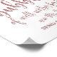 My thoughts on this product was excellent. Well printed in a gloss finishing and just the size l ordered. It arrived in good condition and am overall satisfied with the product. The printing turned out great. I was quite surprised with the finishing touch to the poster. The semi gloss was just right and a perfect size to display at the wedding.