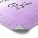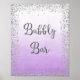 Poster print for bubbly bar wedding sign with faux silver glitter design and ombre purple watercolor background.