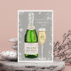 Unique engagement party invitations feature an illustrated champagne bottle and flute glass with your engagement celebration details on the bottle label and champagne glass.