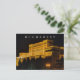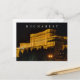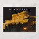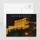 A beautiful view of the Palace of the Parliament in Bucharest in Romania at night printed on a postcard.