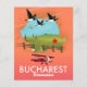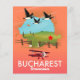 Bucharest Romania vacation map with flying geese and a red biplane.