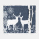 If you love birch trees, deer, nature, and wildlife you'll love this pretty fleece blanket in black, blue, and white featuring a white silhouette deer buck and doe, blue snowy night sky, big white snowflakes, and white birch trees!
