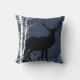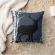 If you love birch trees, deer, nature, and wildlife you'll love this pretty pillow in black, blue, and white featuring a black silhouette deer with a buck on one side, doe on pillow back, blue snowy night sky, big white snowflakes, and white birch trees!