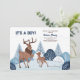 A boy baby shower invitation featuring a stag and his son in hues of blue. (Image by Freepik). The card is easy to customise with your wording, font and font colour. Not exactly what you're looking for? All our products can be custom designed to meet your needs at no extra charge. Simply contact us at askcottonlamb@gmail.com. Coordinating products available at your request at no additional charge.