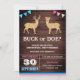 Amaze your guests with this cute gender reveal invite featuring a cute buck and doe with modern typography against a barn wood background. Simply add your event details on this easy-to-use template to make it a one-of-a-kind invitation.