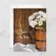 Announce your upcoming casual yet classy ranch style nuptials with the charming Wooden Bucket and White Daisies Country Ranch Wedding Save the Date Postcard. This relaxed and rustic custom western theme marriage keep the date postcard features a quaint digitally enhanced floral photograph of a wooden bucket filled with white daisy flower blossoms and a weathered brown barn wood background.