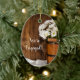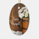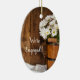 Celebrate your first Christmas as a newly engaged couple and commemorate the special day with the charming Wooden Bucket and White Daisies Country Engagement Oval Ornament. This rustic chic custom we're engaged Christmas ornament features a quaint floral photograph of a wooden bucket filled with a bouquet of white daisy flower blossoms with a weathered brown barn wood background.