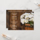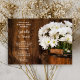 Invite guests to a pre marriage barn party honoring the bride and groom with the charming Wooden Bucket of White Daisies Country Wedding Rehearsal Dinner Invitation. This casual yet classy custom rustic chic farm style dinner party invite features a quaint digitally enhanced floral photograph of a wooden bucket filled with white daisy flower blossoms and a weathered brown barn wood background.