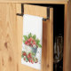 A gift for mum, a kitchen towel with a bucket of fresh Strawberries all on a crisp white background.