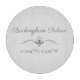 Latitude and longitude coordinates for Buckingham Palace, London, England. Fancy font and divider adds a touch of  elegance .  Pastel grey background