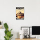 • This stunning vintage-style travel poster captures the enchanting nightscape of Budapest, Hungary. The iconic Hungarian Parliament Building and Széchenyi Chain Bridge are illuminated in warm, golden tones, casting a mesmerising reflection on the calm waters of the Danube. With its retro charm and rich, deep colours, this poster is perfect for those who appreciate the magic of European cityscapes and the allure of Hungary’s capital at night.