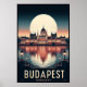 • This stunning vintage-style travel poster captures the enchanting nightscape of Budapest, Hungary. The iconic Hungarian Parliament Building and Széchenyi Chain Bridge are illuminated in warm, golden tones, casting a mesmerising reflection on the calm waters of the Danube. With its retro charm and rich, deep colours, this poster is perfect for those who appreciate the magic of European cityscapes and the allure of Hungary’s capital at night.