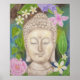 Beautiful print of an original painting by me, of a Buddha statue face surrounded by colourful flowers.