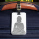 This luggage tag features an image of a Buddha statue, with customisable text on the back, and customisable background colour.