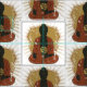 Buddha silhouette sits cross legged in dark orange robe meditating with the Devanagari Om Symbol on his palm! Half tone background shield background creates a powerful yet peaceful Buddha gift!