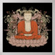 Meditating Buddha in dark orange robe sits atop a big Lotus Flower with beautiful floral background elements! Wonderful meditation Buddhist gift!