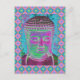 Brightly coloured Buddha in pop art colours with patterned borders.