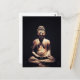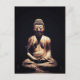 The image showcases a bronze statue of Buddha, seated in a meditative pose with hands resting in his lap. The statue is carved with intricate details, including a serene expression on the face and flowing robes. The Buddha is depicted in a dark, almost black, background, highlighting the statue's golden-brown colour.