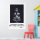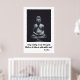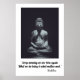 A grayscale photograph captures a serene Buddha statue seated in a meditative pose against a dark background. The statue is carved with intricate details, including a serene expression on the face, flowing robes, and a traditional headdress. The lighting casts subtle shadows on the statue, highlighting its form and creating a sense of tranquillity.