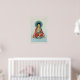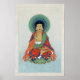 Religious figure, possibly Buddha, sitting on a lotus, facing front, with bluegreen halo behind his head (1878).