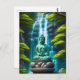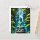 Tranquil buddha statue sitting next to a flowing waterfall.