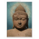 Beautiful portrait of Buddha on a blue "marbled" background to customise.