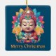 A tranquil scene depicting a serene figure amidst a festive Christmas backdrop. The figure, with its peaceful expression and meditative posture, radiates an aura of calm and introspection, while the Christmas decorations and ornaments add a touch of warmth and cheer. This artwork represents the universal message of peace, love, and harmony that both contemplative traditions and seasonal celebrations promote.