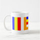 The six vertical bands of the flag represent the six colours of the aura which Buddhists believe emanated from the body of the Buddha when he attained Enlightenment: