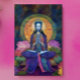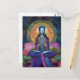 Buddhist Goddess Blue Tara Floral Rainbow Painting Postcard