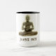This mug shows a buddha in meditation and the caption tells you how to do so in a very simple and zen manner.