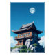 Zen Buddhist temple in the mountains of East Asia. The full moon in the sky may suggest an important spiritual moment. Confucian, Taoist and Shintoist temples have similar architectures