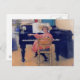 Painting of little girl (BRITA) looking over her shoulder after playing music on a baby grand piano. Vintage old-fashioned girl by Swedish artist Carl Larsson.