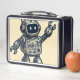 A lunch box featuring the Buddy One robot design.