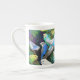 Original fine art design of colourful budgerigars or budgies by artist Carolyn McFann of Two Purring Cats Studio printed on a dishwasher and microwave safe bone china mug for parrot lovers.