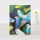 Colourful budgerigar parakeets in ferns in this original painting by Carolyn McFann printed on a quality greeting card. For pet parrot and wild bird lovers everywhere.